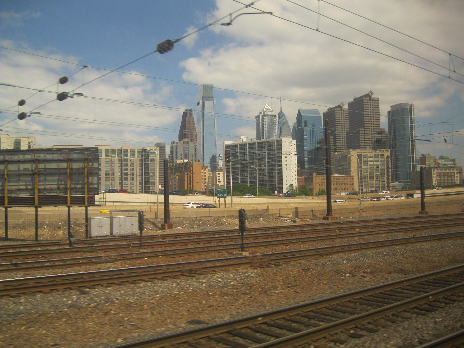And suddenly, once we left Lancaster, I started recognizing things after four days of feeling like a wide-eyed tourist. We sped down the Main Line, passing the areas where I went to high school and college, and the first house my parents lived in. Finally, we curved toward 30th Street Station and I could see the familiar Philadelphia skyline come into view. Somewhat bedraggled and very much exhausted, Mom and I lugged our suitcases through the station and met my father outside for a ride home. (We actually could have taken a SEPTA Regional Rail train from 30th Street to East Falls, but they were on strike.)