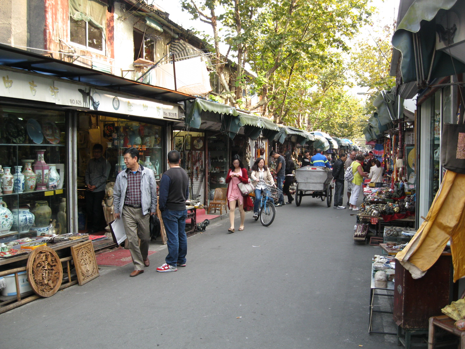 At first, it seemed like business as usual: I entered the market area from the east end of Liuhekou Road, walked to the intersection with Dongtai Road and turned north. The market was more or less as it had been on Sunday—stalls crammed with a mixture of junk and cool stuff, vendors playing mahjong in the alley while they waited for customers, a few intense ones calling me over and going for the hard sell. A couple of the stores had their security grills down, but most were still open for business.