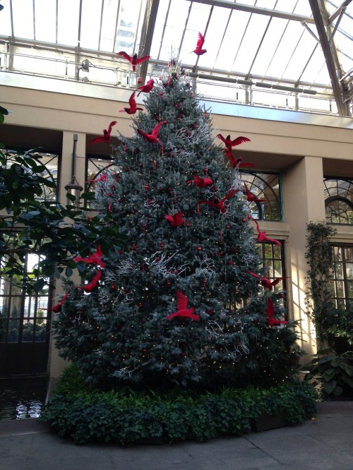 Saturday was cold—we’d all dressed as warmly as possible, but still made a beeline for the Conservatory as soon as we entered the gardens, walking quickly past the decorated outdoor trees. We wanted to be indoors.