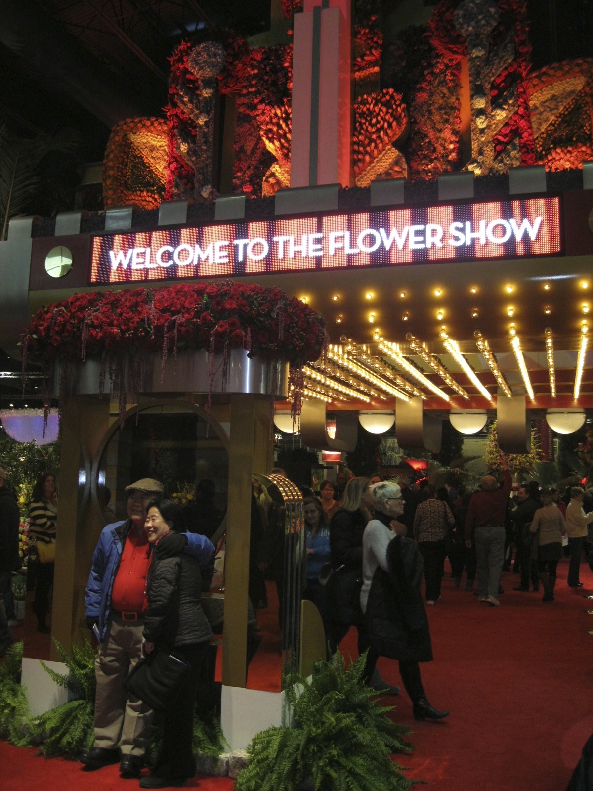 My mother and I celebrated her birthday a month early with a trip to the Philadelphia Flower Show on Saturday afternoon. This year’s Flower Show theme is “Celebrate the Movies,” so the entrance is done up as a movie premiere, with a marquee and red carpet—and the smell of popcorn wafting through the air.