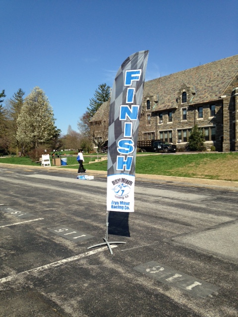 The registration for the race promised a “fun, flat” course, and I had an idea in my mind of where we’d be heading. I turned out to be completely wrong, and the course was anything but flat. We wound through Merion’s campus and then crossed the street to enter the neighborhood behind the school. One hill after another, and they were steep. As Moira and I started up the first hill in the neighborhood, two cyclists came up behind us and called out, “first runner! First runner!” We moved to the side and watched a teenage boy run past us. We were barely into the off-campus course, and he was already on his second lap. It’s like gym class all over again.