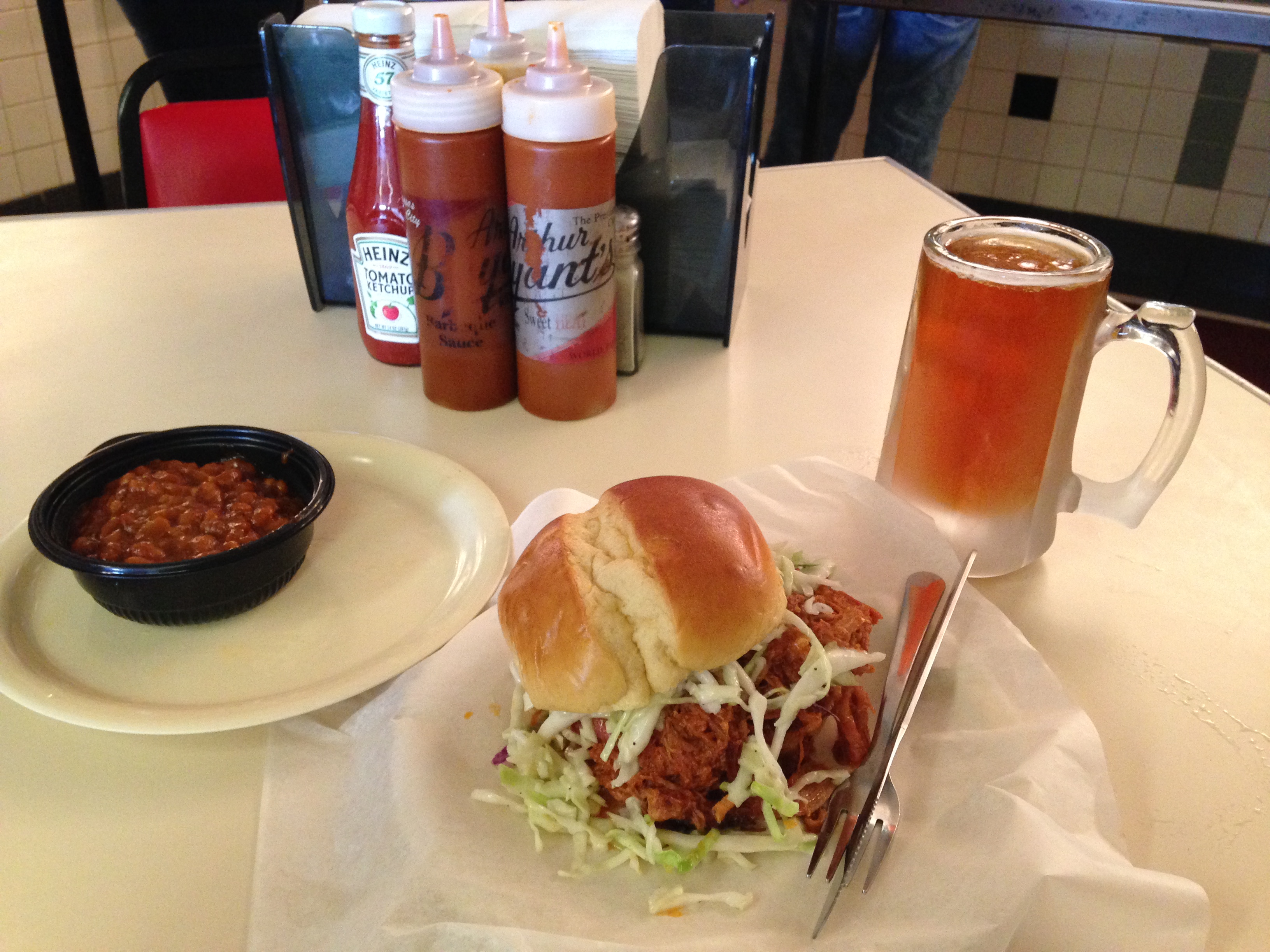 The waitress clucked her tongue when I explained that I was alone in Kansas City, just passing through for the day on my way to Kansas State University. For half a second I thought she was going to play matchmaker and find me a table to join, to save me from my solitary meal. But instead, she thanked me for making Arthur Bryant’s my Kansas City barbecue of choice and walked away, leaving me to once again contemplate the pile of pulled pork and coleslaw sitting on the plate before me. My “pig on a bun” was enormous, and I’d foolishly added a side of baked beans as well. It was easily enough for two meals, but my hotel room didn’t come with a fridge to store leftovers. Wielding knife and fork, I methodically worked my way through the sandwich, consuming three-quarters of the delicious saucy pork before I couldn’t manage another bite. The waitress returned as she saw me preparing to leave, clucking once again over my failure to clear the plate. I assured her the meal was fantastic and that I would not need to eat again for the rest of the day, and she smiled. “Spread the word, honey!”
