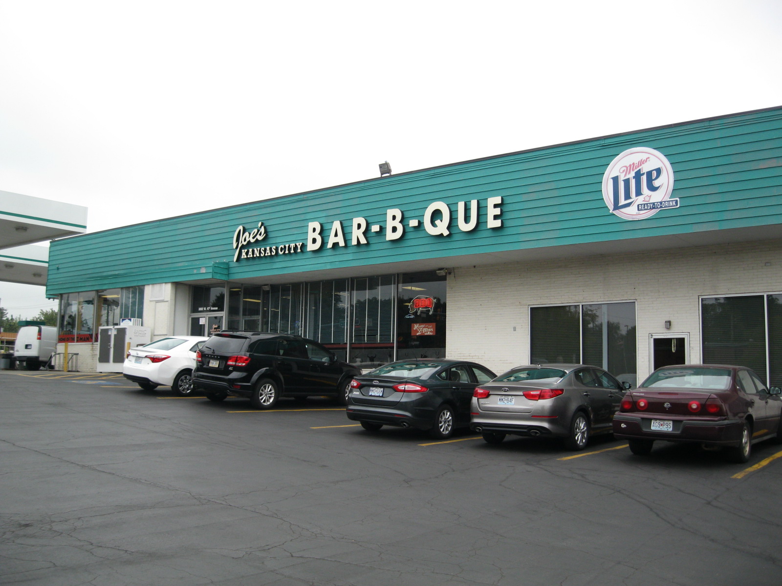 I ordered another pulled pork sandwich, skipping the coleslaw on top in favor of a potato salad side, attempting an imperfect comparison between the two famous barbecue joints. Except, I found, they were too dissimilar to really be compared. The Arthur Bryant’s sandwich had been huge and unwieldy, a feast of shredded pork and sauce. Joe’s produced a far more compact sandwich—one that I could actually pick up to eat—with larger chunks of pork and only the barest trace of sauce (though you could add more of your favorite style from bottles on the table). Each was, in its own way, fantastic. Let the Kansas City barbecue debates rage on … I couldn’t choose.
