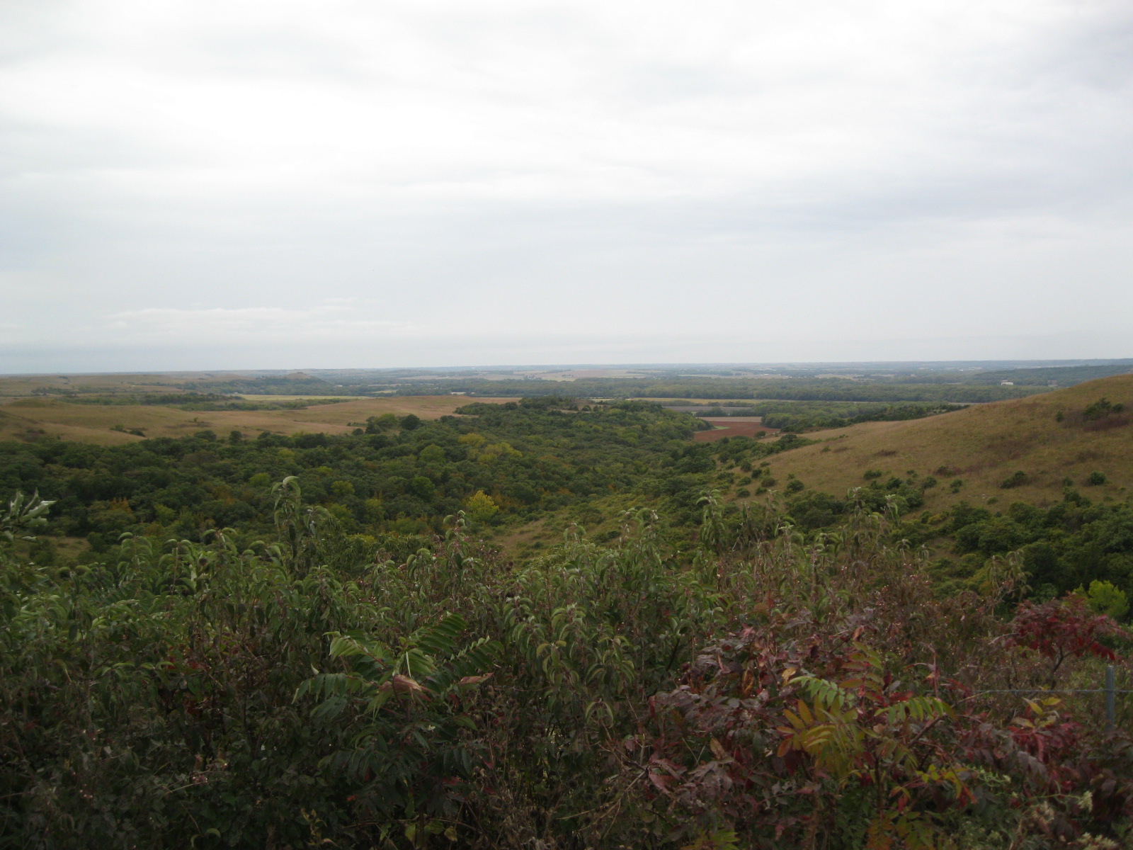 A few miles before Manhattan, though, I saw a sign for something that wouldn’t put me too far behind schedule: a scenic overlook. I pulled into the small parking lot and got out of the car, relieved to stretch my legs after two hours on the road. Walking to the designated overlook spot, I surveyed the land below me. Based on nothing more than The Wizard of Oz, I had assumed Kansas would be flat and colorless, but I was in the Flint Hills region, where the land gently rose and dipped, covered by tallgrass prairie in varying shades of green and brown. I took a few photos, then stood at the overlook for another minute, imagining a time when people traveled the hills by covered wagon rather than Hyundai Accent, when the 120 miles between Kansas City and Manhattan would have taken days rather than hours. It was difficult to fathom.
