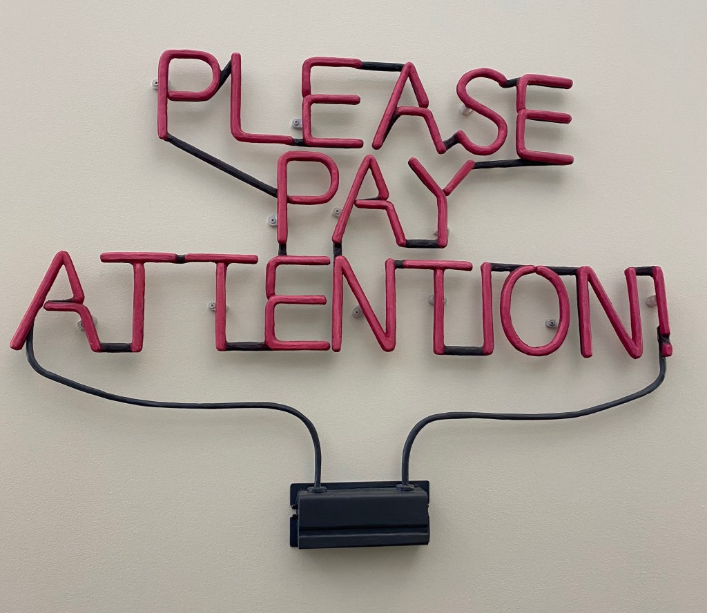 Feature Photo: Conrad Bakker, “UNTITLED PROJECT: SIGN [NEON] [PLEASE PAY ATTENTION]” (2009), on display at the Illinois Conference Center, Champaign, IL.