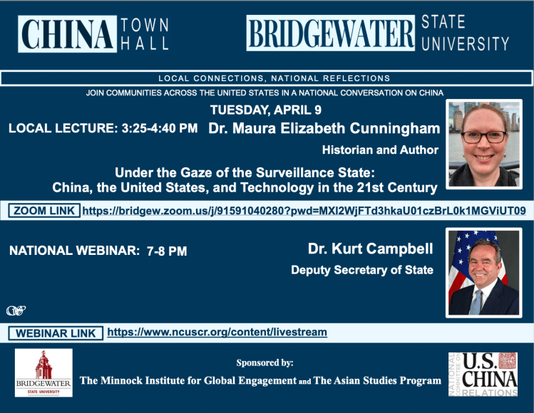 First, I’m giving a virtual talk on Tuesday afternoon (Eastern Time) as part of the CHINA Town Hall program organized by the National Committee on U.S.-China Relations. I’ll be speaking “at” Bridgewater State University on technology, surveillance, and politics in China and the United States: