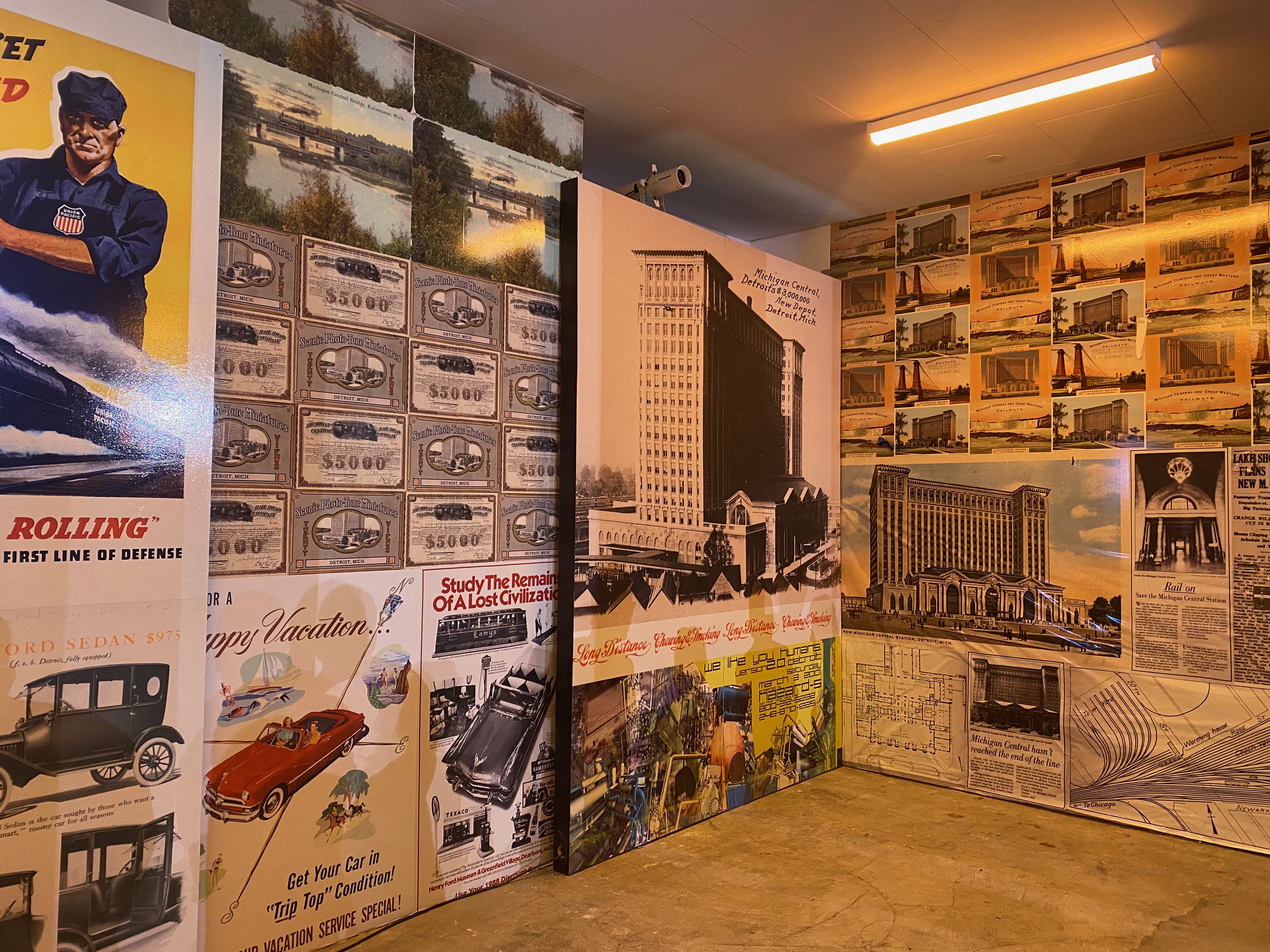 The Grand Hall introduces the history of MCS and Detroit (and Ford), while the former ticket office is now the “Poster Vault,” its walls plastered with historic promotional materials for the railroads and Detroit cultural events (and Ford). What was once the reading room contains “Faces of Michigan Central,” a collection of oral histories featuring memories of people who once worked at the station or who have significant family stories involving MCS (including Bill Ford). Other interviewees worked on the restoration or participate in one of the technology programs already housed in the campus’s offices.