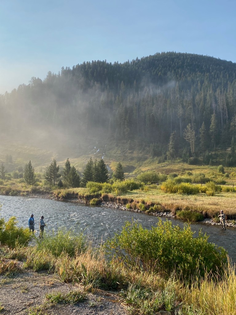 I drove to Yellowstone from Bozeman, Montana, following the gorgeous Gallatin Valley route down through Big Sky to the park’s west entrance. The road into the park, and the first section of the Grand Loop Road south from the turnoff at Madison Junction, is beautiful—I passed sparkling rivers and lush foliage, mountains rising in the background. But nothing prepared me for the otherworldly experience of entering the geyser basin, when I suddenly started seeing huge plumes of steam rising like smokestacks on the horizon. The occasional herd of bison resting not far from the road, immense even at a distance, only added to the feeling that I had crossed from a standard-issue park to something much more mysterious and fascinating.
