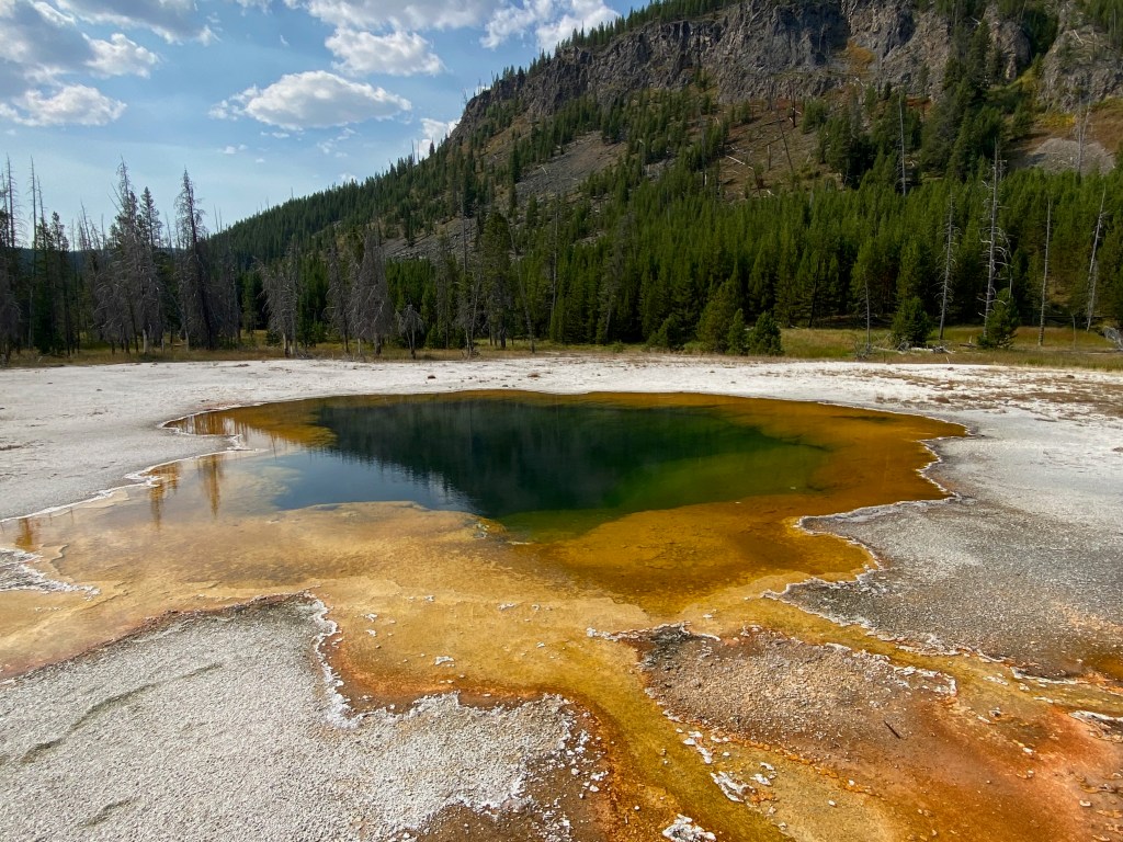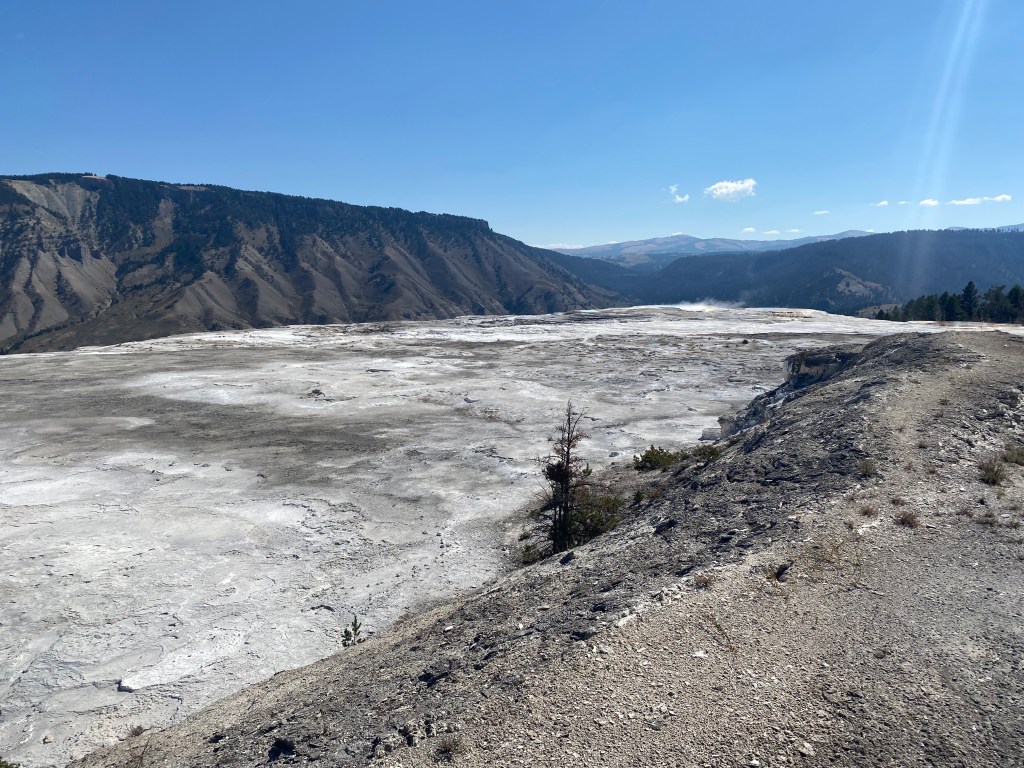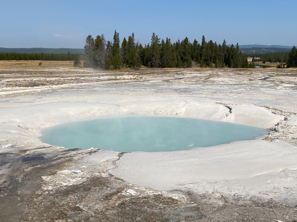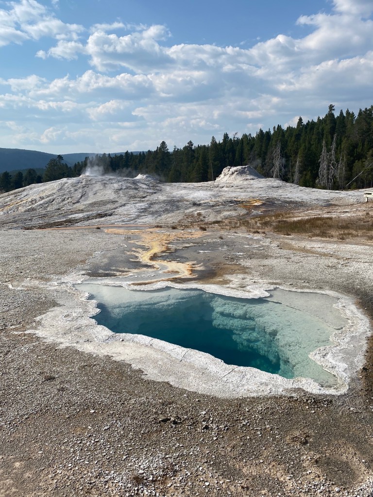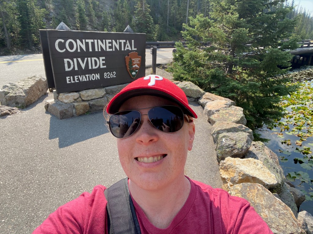 So I decided to forgo the eastern side of the park—just driving there and back would have taken at least an hour and a half each way—and double down on enjoying the western side in the time I had left. I returned to some of the geyser areas I had initially skipped due to crowds, circling parking lots until a space eventually opened up. Without the worry that I needed to keep moving, I slowed down even further, sometimes walking a section of the park twice to ensure that I’d seen everything. I drove down to the Continental Divide—kind of anticlimactic, as the only indication of it is a big sign that says “CONTINENTAL DIVIDE,” but I’ve never passed up a cheesy photo op before and wasn’t about to start then.