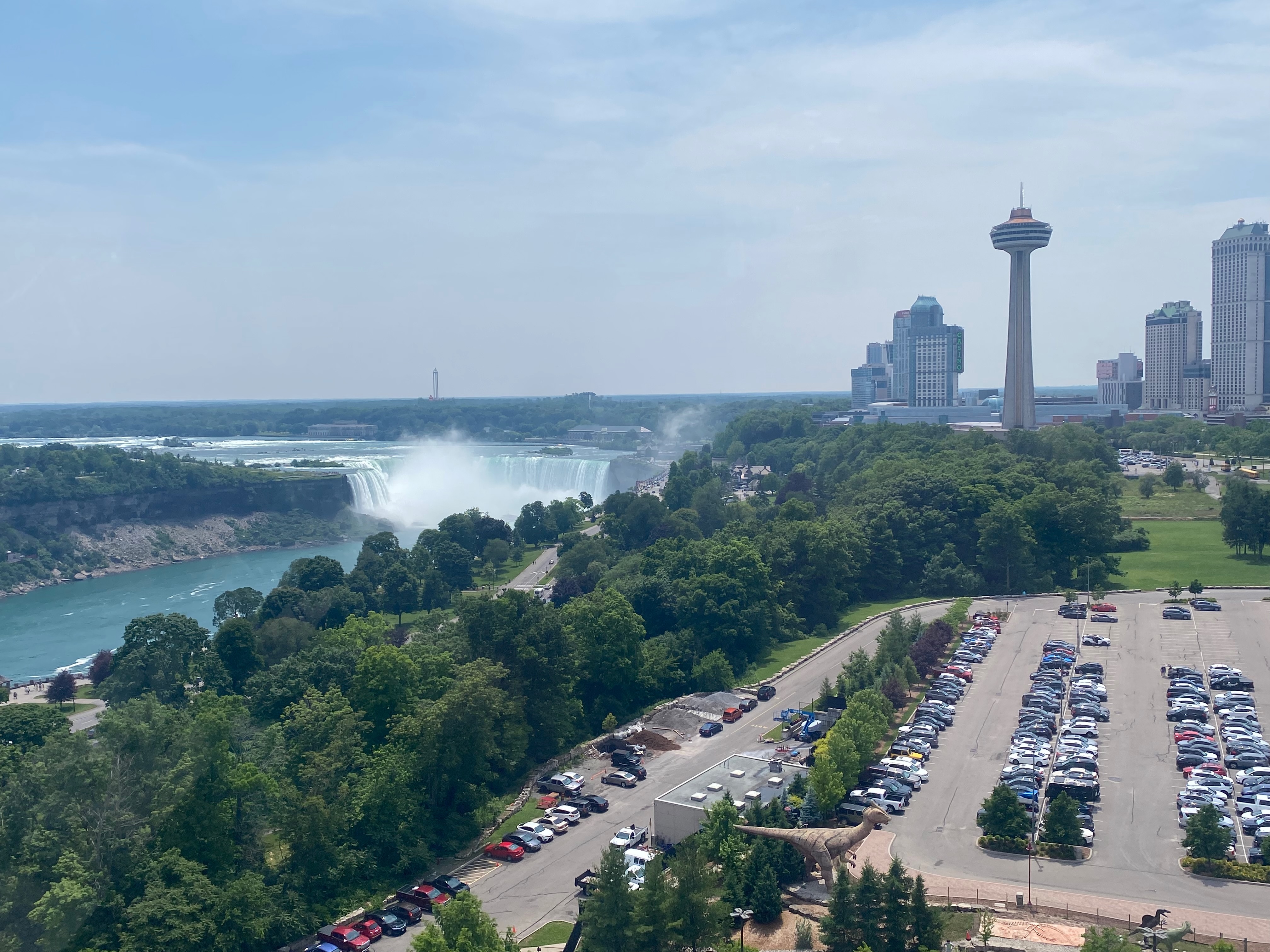 Featured photo: Horseshoe Falls and the Niagara region, seen from the Skylon Tower observation deck, June 20, 2024.