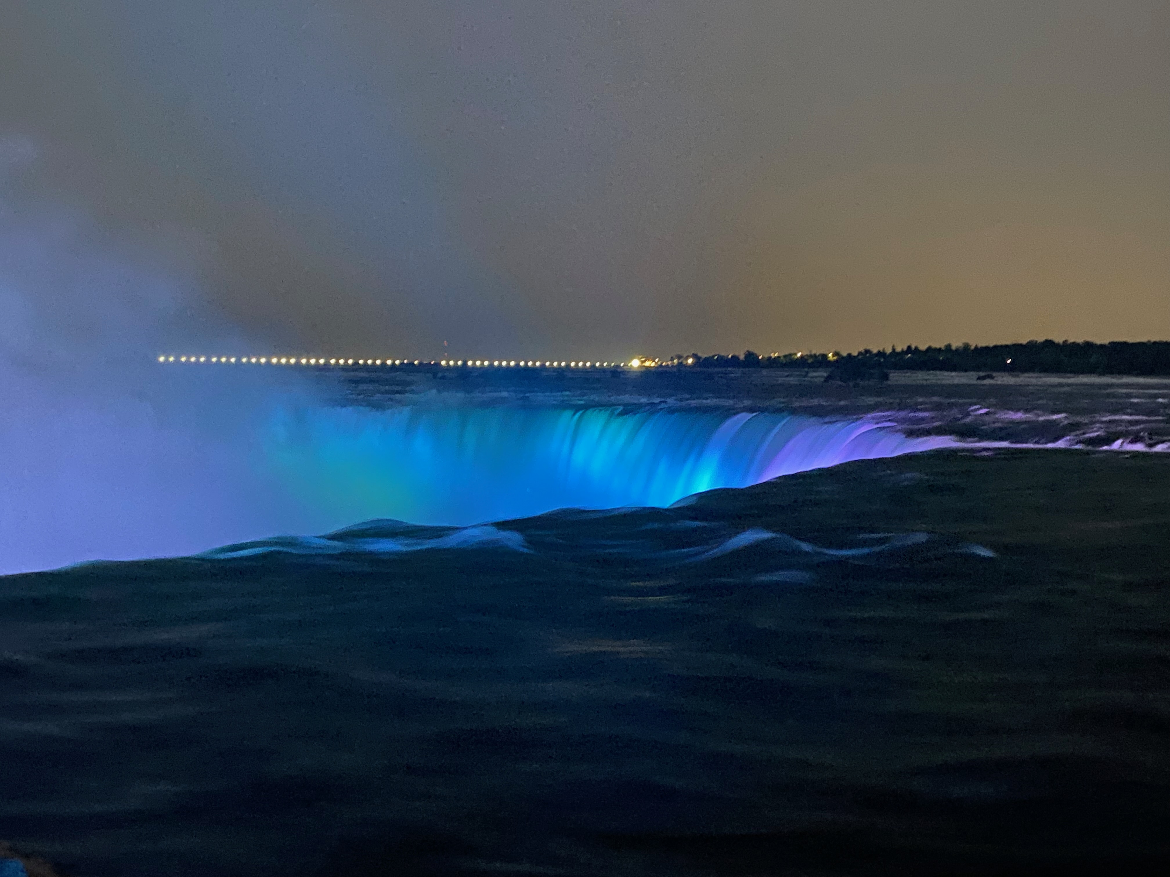That evening, my brother and I went to the Power Station museum and waited for darkness to fall. We walked down a 2,200-foot tunnel and emerged onto a viewing platform next to the falls, which were illuminated for the evening light show.