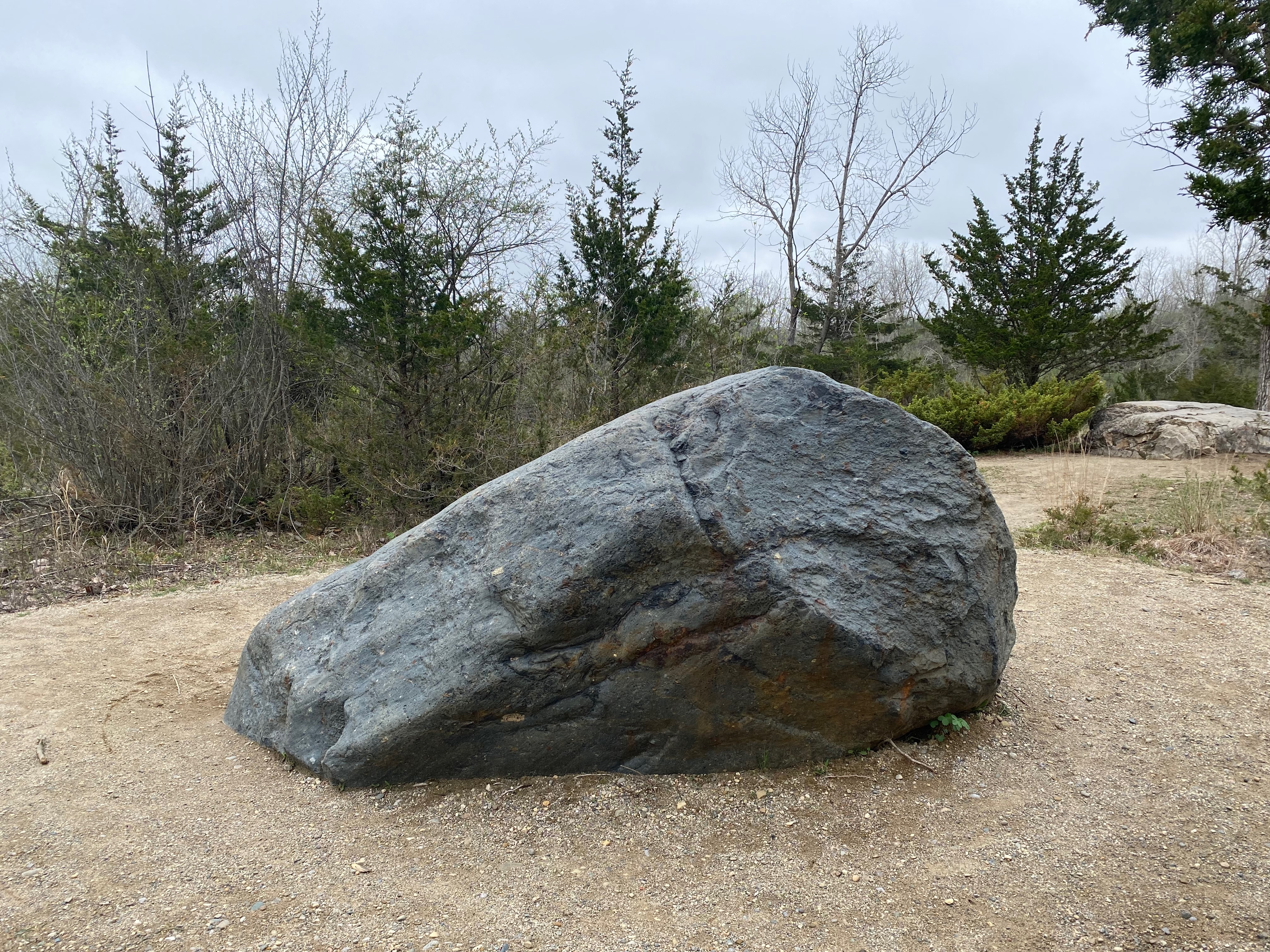 Most notable event of my week: yesterday’s Phi Beta Kappa Greater Detroit Association “glacial geology of Ann Arbor” field trip, which introduced me to this glacial erratic boulder that’s 2.4 billion years old and just sitting along a trail at the Fox Science Preserve.